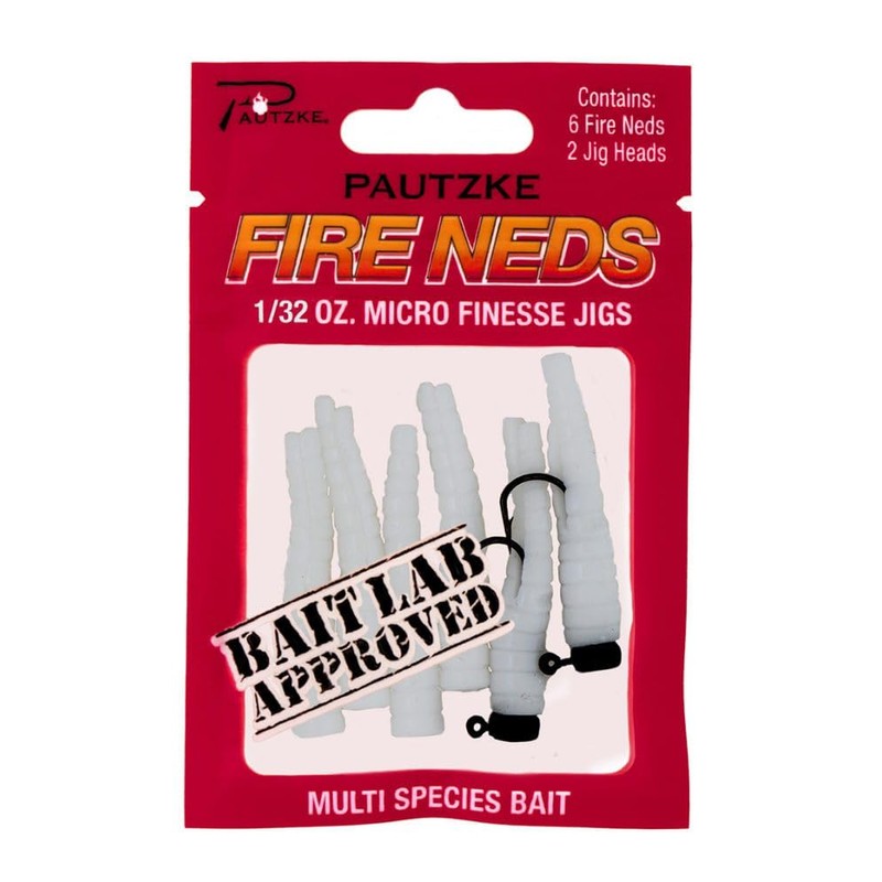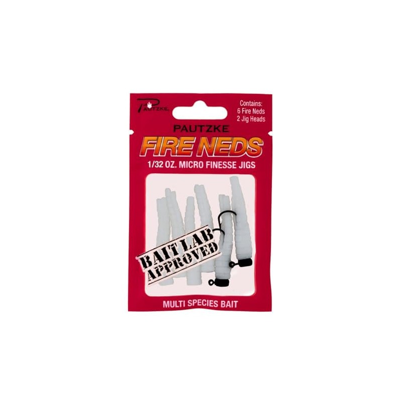 Pautzke's Fire Neds White Micro Finesse Jigs, 1/32 oz - Ultimate Trout and Multi-Species Fishing Lures, Includes 6 Neds & 2 Pre-Rigged Jig Heads