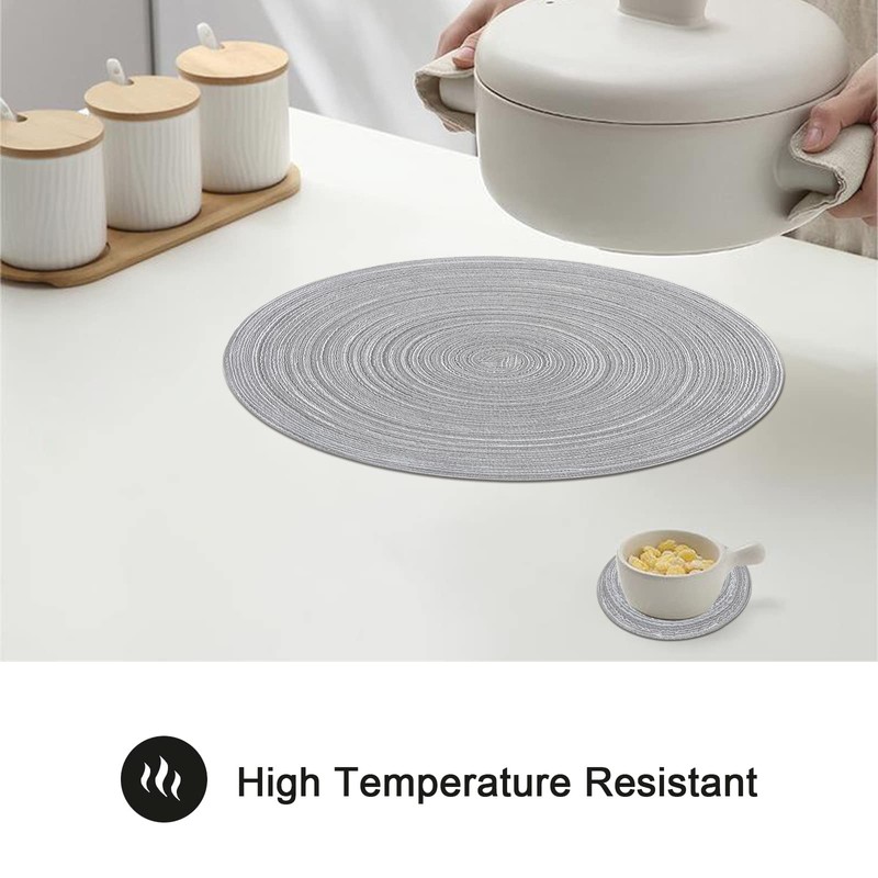 Pauwer Round Washable Place Mats and Coasters Set of 6, Braided Heat Resistant Table Mats Washable Non-Slip Place Mats for Dining Room, Kitchen, Wedding, Party