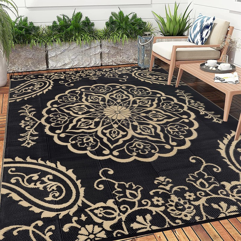 - Premium Quality: This outdoor patio rug is made of upgraded recyclable polypropylene material, which makes this outdoor carpet more durable, waterproof and no fading. UV coated for long lasting colors and heat treated edge to avoid fraying