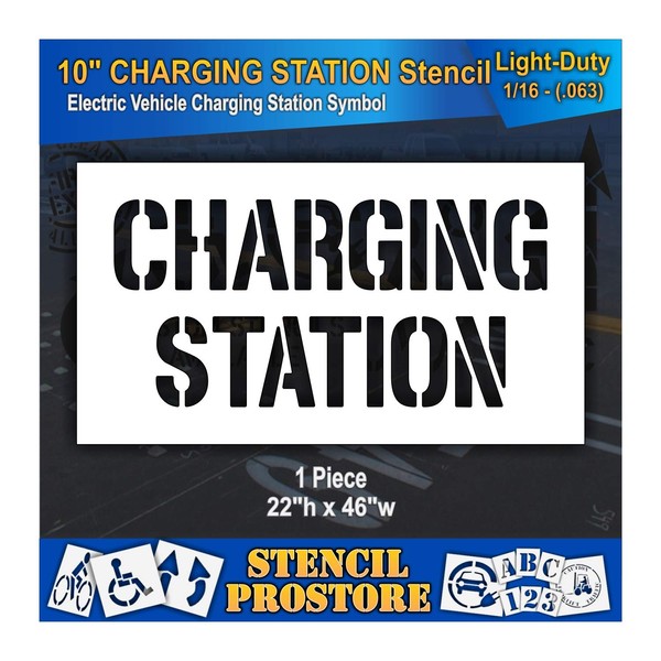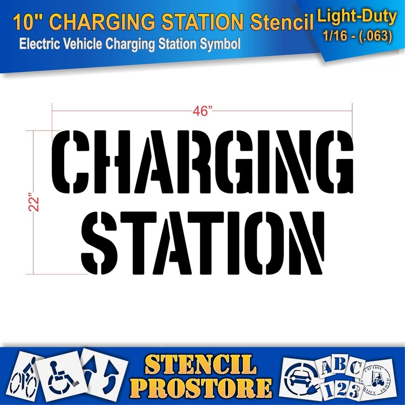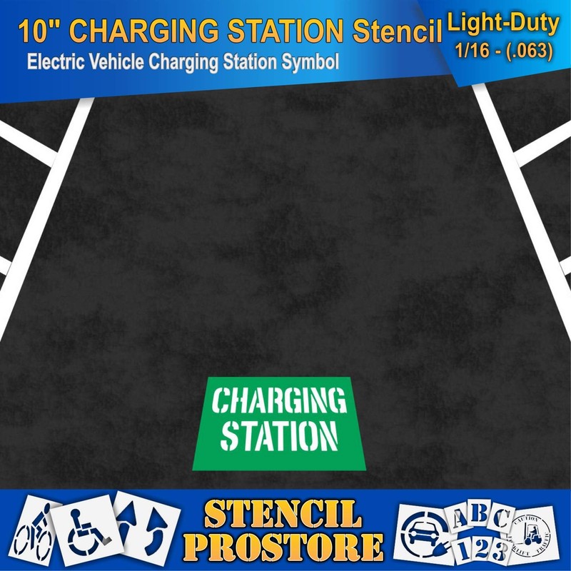 Pavement Stencils - 10 in - Charging Station Stencil - 22'' x 46'' x 1/16" (63 mil) - Light-Duty