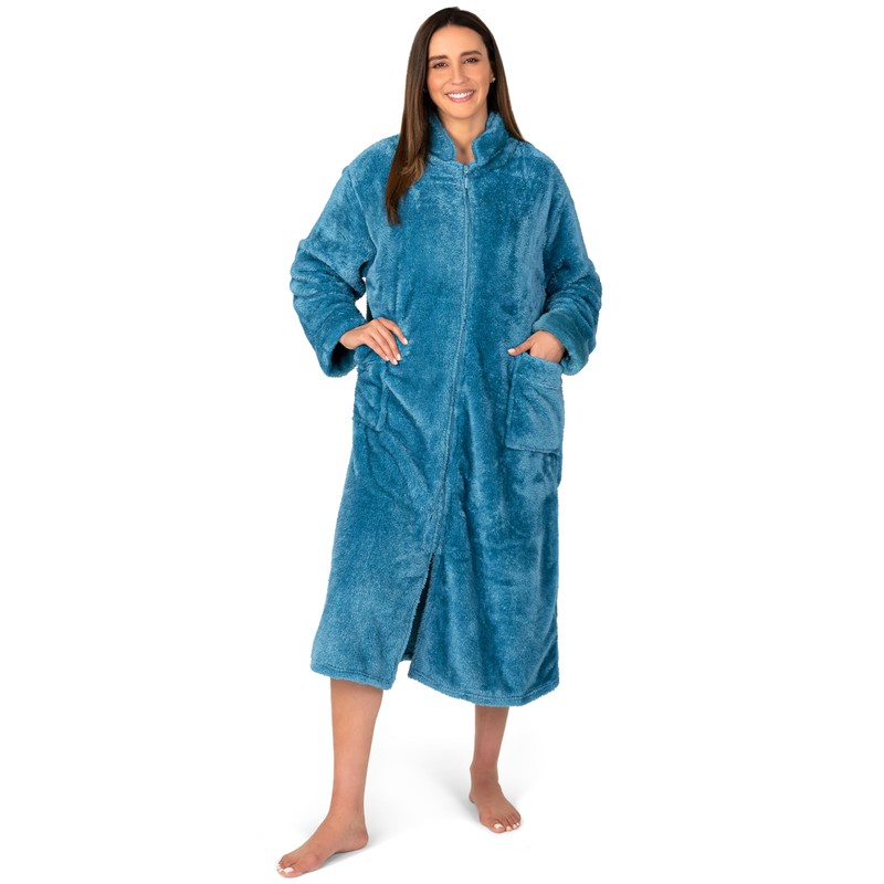 chamarra suave y cómodo para la casa: nuestra bata larga de forro polar de microfibra con cierre frontal es de longitud completa, con un cuello suave y mangas largas. Diseñado para un ajuste relajado y holgado para que puedas moverte libremente, mientras que la cierre facilita el cambio y el uso.