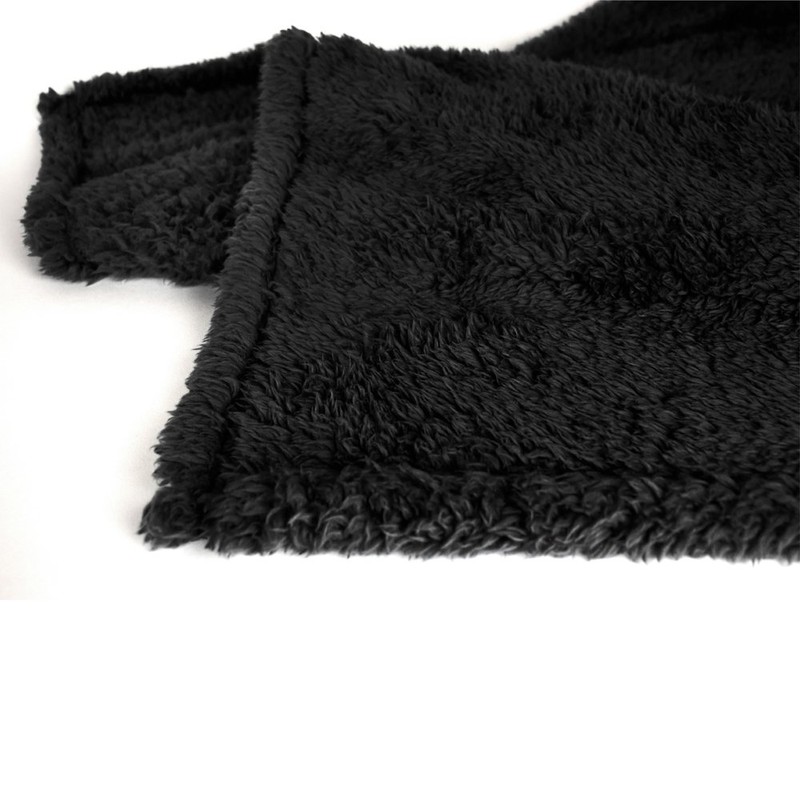 PAVILIA Fluffy Sherpa Throw Blanket for Couch Sofa | Plush Shaggy Fleece Blanket | Soft, Fuzzy, Cozy, Warm Microfiber Throw Solid Blanket, Black, 50x60