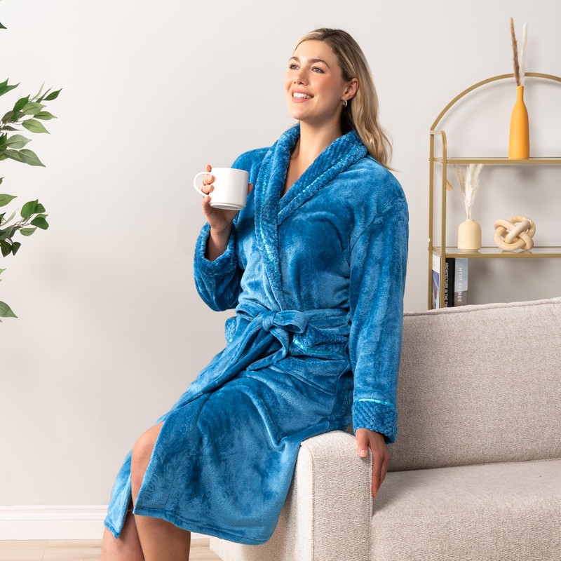 Premium Women Fleece Robe with Satin Trim and Waffle Cuff by Pavilia