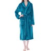 PAVILIA Soft Plush Women Fleece Robe, Turquoise Teal Blue Cozy Bathrobe, Female Long Spa Robe, Warm Housecoat, Satin Waffle Trim, S/M