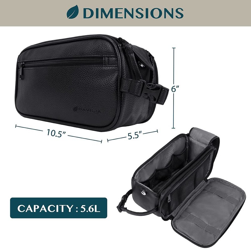 - WATER RESISTANT TOILETRY BAG DOPP KIT: This toiletry case kit is made from high density PU leather with added side padding for durability and extra protection to keep your toiletries safe and protected during travel. The lining is water-resistant to prevent liquid splashes from entering the bag or luggage. The toiletry bag also offers excellent wet/dry separation so you can keep wet accessories in a separate compartment from dry toiletries during camping, road trips, weekenders.