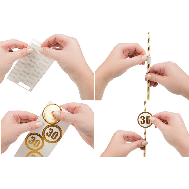 - In-house design: "40" Numbers are heat-stamped onto the circular attachments while the straw itself features a metallic stripe pattern.
