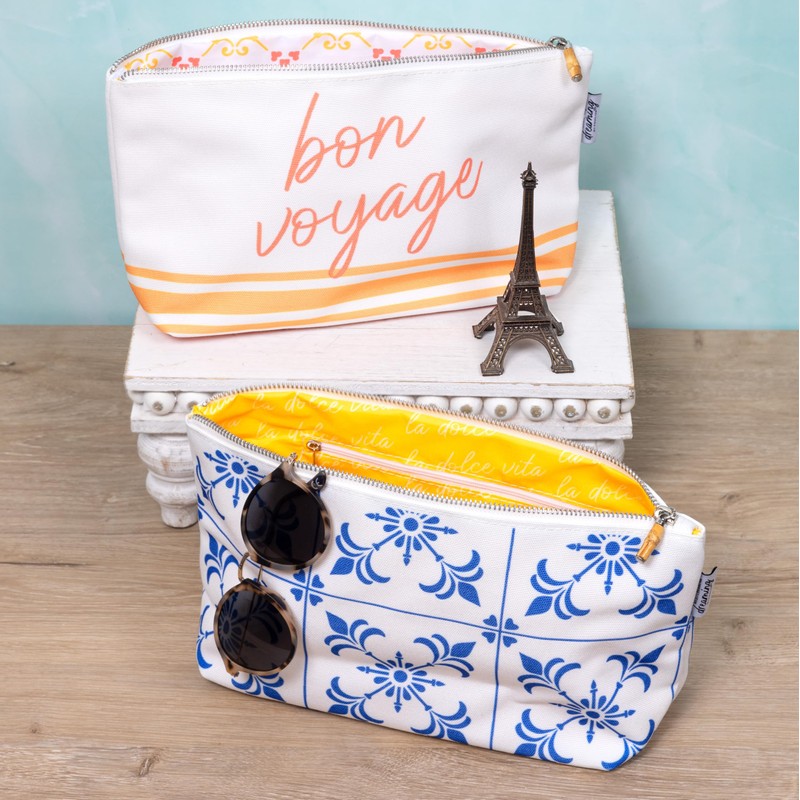 - IN-HOUSE DESIGN: Inspired by the relaxed elegance of Mediterranean style, this pouch showcases a blue and white tile pattern reminiscent of classic Italian decor. Inside, you’ll find the phrase “La Dolce Vita” repeated against a yellow backdrop, bringing an element of charm and positivity every time you open it. Featuring a sewn-in logo tag on the side and a subtle logo at the bottom, this design is as thoughtful as it is beautiful, making it a stylish and functional accessory for any journey.