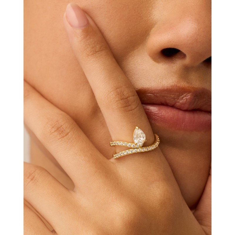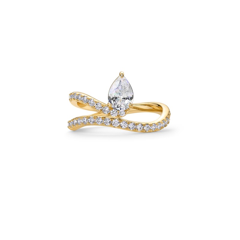 - Say "yes" with this unique engagement ring, featuring a wraparound wavy band ending in a 5mm x 7mm pear-shaped 88 cuts cubic zirconia stone. This wavy 14K yellow gold-plated promise ring features a 1.9mm wide band and a distinctive style that adds a touch of charm to any occasion.