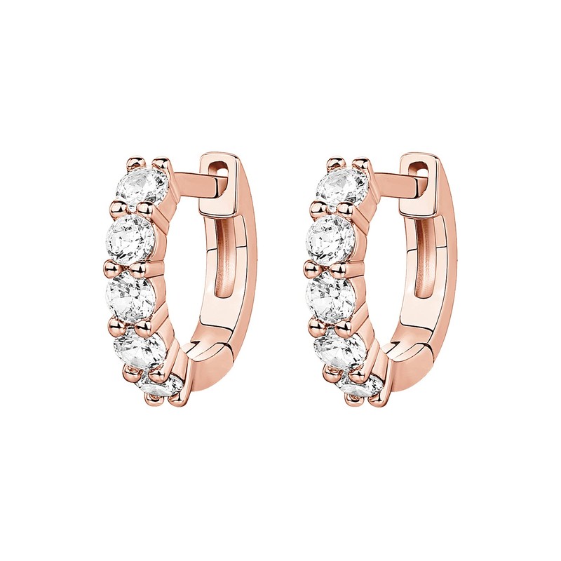- A Hollywood favorite, huggies are one of the biggest jewelry trends right now! At just under 1/2" in diameter, our rose gold and cubic zirconia earrings are perfect for every day and night wear, and can also be worn in a second hole.