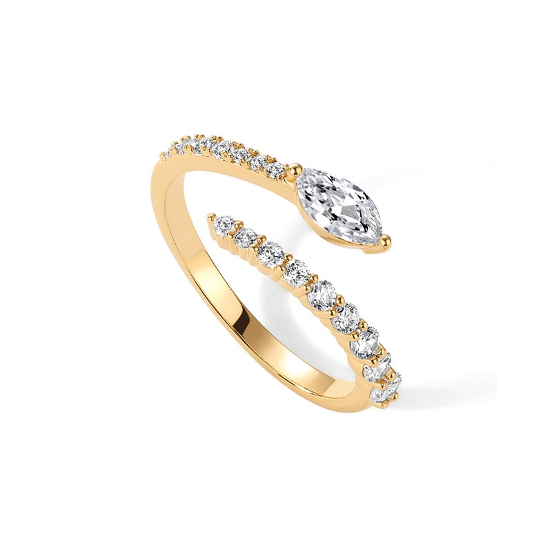 - Up your style game with our open twist gold ring. It's got a marquise stone in the spotlight and a bunch of shiny AAAAA CZ stones in different sizes. Plus, it's gold-plated for that extra bling, making it perfect for any chill or fancy occasion.