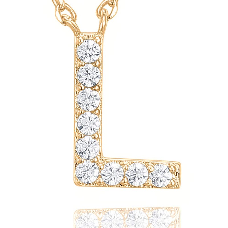 PAVOI 14K Yellow Gold Plated Cubic Zirconia Initial Necklace | Letter Necklaces for Women | L Initial