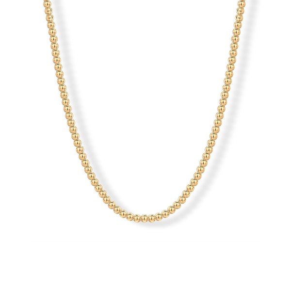 - Meet the essential gold bead necklace for everyday wear. This simple adjustable 14K yellow gold-plated 15" + 3" extender necklace with 3mm ball beads is exactly what any outfit needs. Whether worn on its own or layered with other chains from your jewelry collection, this necklace is a must-have addition.