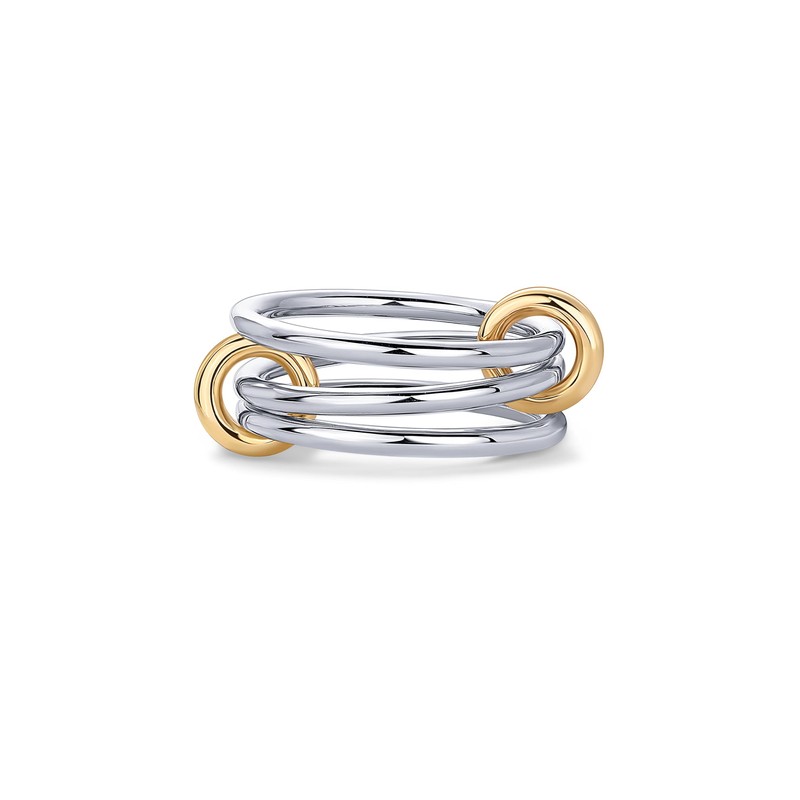 - A delicate, simple stackable ring trio, interlocked for a clean look with effortless elegance. Crafted from mixed metals and plated in 14K yellow gold and rhodium, this two-toned design brings together the best of both metals. Each band is 2mm wide, offering just the right touch of shine. Made to be worn your way: stack them on a single finger or spread them across different digits for a unique, personalized style.