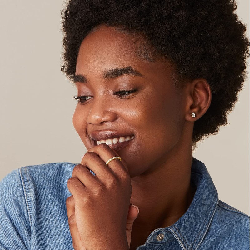 - CLASSIC ETERNITY BAND: Our brilliant faux diamond eternity band is the perfect and simple eternity ring offering premium quality fashion. Wrapped in cubic zirconia this beautiful stackable ring is available in rose gold, white gold and yellow gold.
