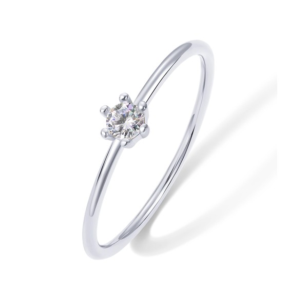 PAVOI Rhodium Plated Round Mini Cubic Zirconia Stackable Ring for Women | Stacking Thin Band for Women | Size 9