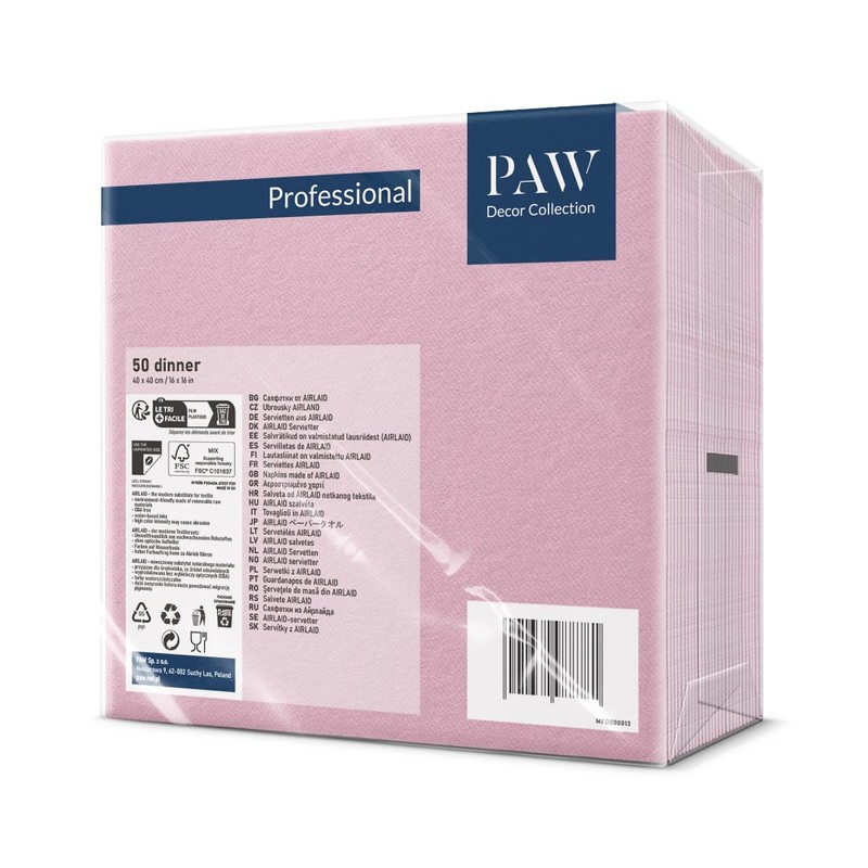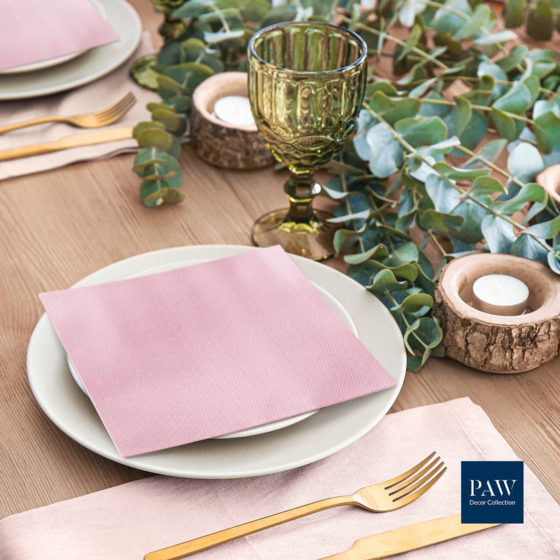 Paw Airlaid Napkins - Fabric-Like (40 x 40 cm) I Pack of 50 I Ideal for Weddings, Christenings, Communion, Birthdays I Fabric Napkins - Plain, Pink I Colour: Monocolour (Light Pink)