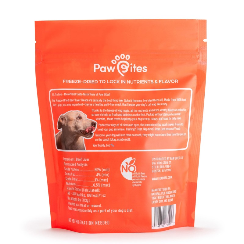 Paw Bites Freeze Dried Dog Treats - Beef Liver with Protein, Dog Food Dry Snacks - with Protein & Omega 3s - for All Breeds & Sizes - No Artificial Flavors & Dyes, No Preservatives - 1 Pouch, 4 oz