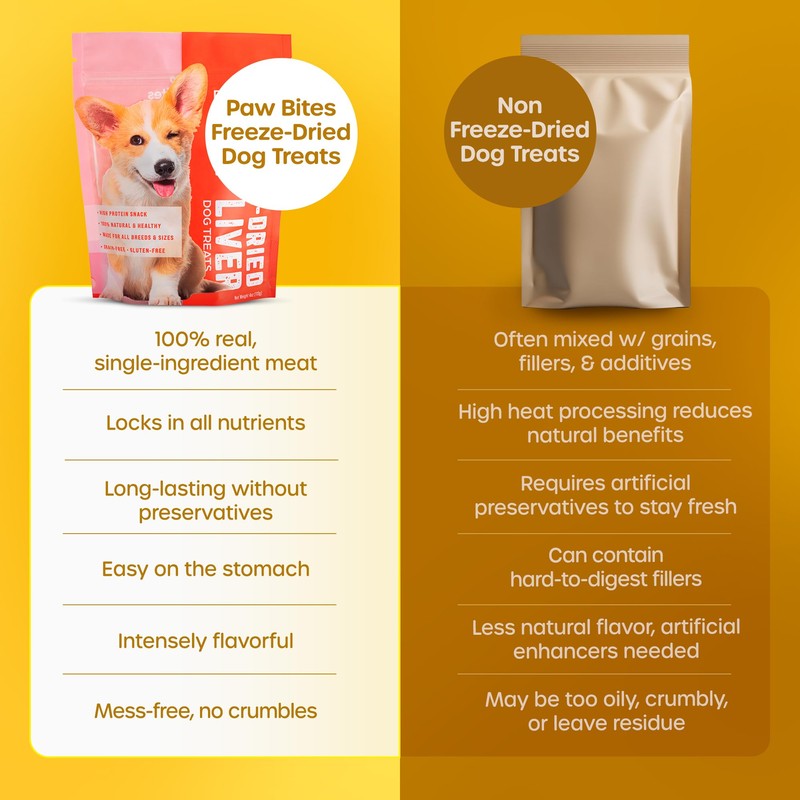 - MORE THAN DOG FOOD - Don’t limit our nutrituous freeze dried puppy food to meals. Give them to your paw baby as treats, snacks, or as a reward for every job well done, or even as dog training treats or puppy training treats. Whether it’s feeding them responsibly or simply spoiling them with your love, let our crunchy bites be a part of your and your pet’s paw-some daily life!