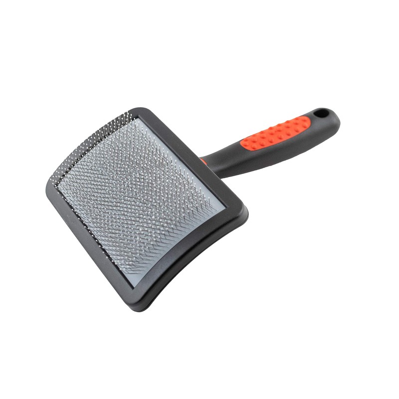 - PINS - Designed with soft pins, this slicker brush is perfect for pets with sensitive skin and delicate coats. The curved design of the brush ensures maximum coverage and gentle grooming.