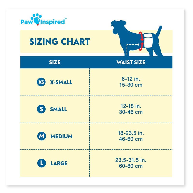 - LEAK PROOF: Paw Inspired specializes in disposable belly bands for dogs and only provides the highest quality absorbent materials and leak protection for your fur baby. Our premium belly band for dogs has a super absorbent core, comfortable secure fit, breathable bottom layers, and gathered leak proof edges.
