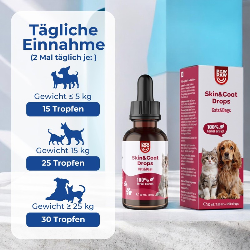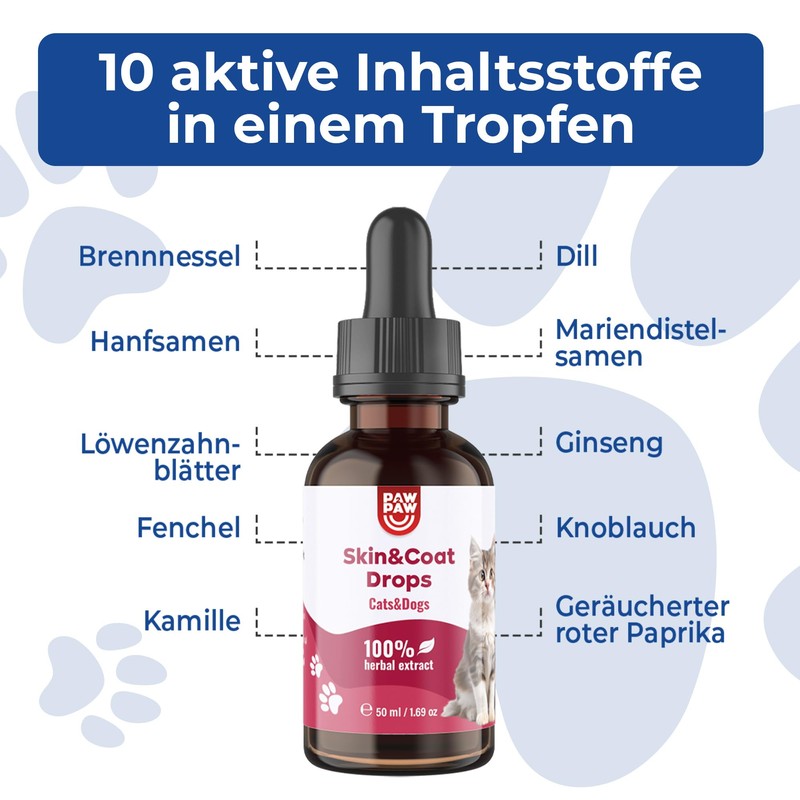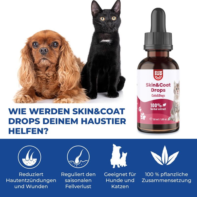 Paw2Paw Skin&Coat Drops - Natural Herbal Drops for Skin and Fur Health in Cats and Dogs | Reduces Irritation and Supports Healthy Fur Growth | 50ml
