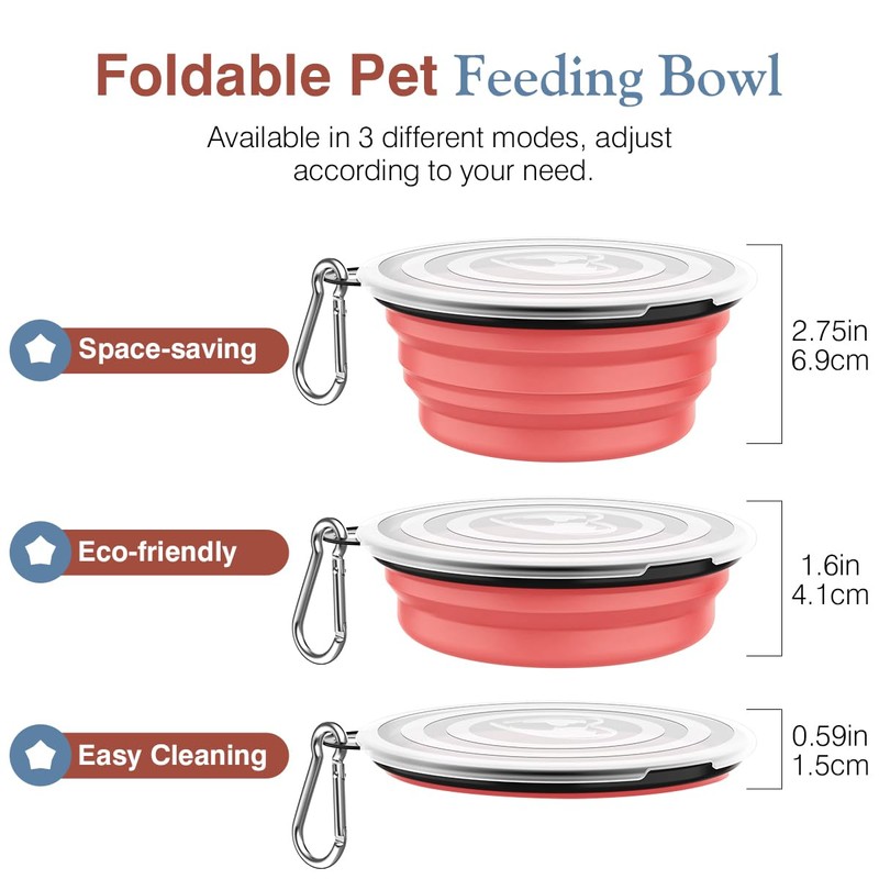 - 【 Portable & Convenient 】: Each bowl comes with a carabiner for easier portability, can be attached to belt loop, hiking backpack, leash, harness or other locations. These dog food bowls are suitable for walking, traveling, hiking, camping, or indoor use at home.