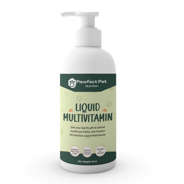 Pawfect Pet Nutrition Liquid Multivitamin Treats for Dogs - Glucosamine Chondroitin for Joint Support + Digestive Enzymes & Probiotics - Grain Free Vitamin for Skin & Coat + Immune Health (8 Oz.)