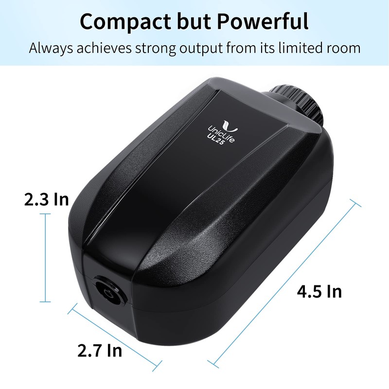 - Adjustable Air Flow: Feature a rotary knob to control the amount of air for dual outputs, allowing for your desired air flow to fully oxygenate your aquariums.