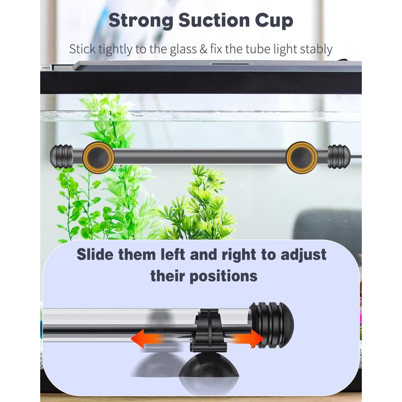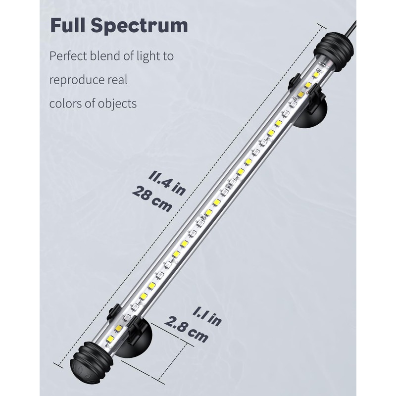 - 11.4" in Length: This aquarium LED light works best in medium-sized tanks – sufficient to light up the entire tank anytime to promote the healthy growth of aquatic lives. It can be easily fixed on your tank with the attached suction cups.