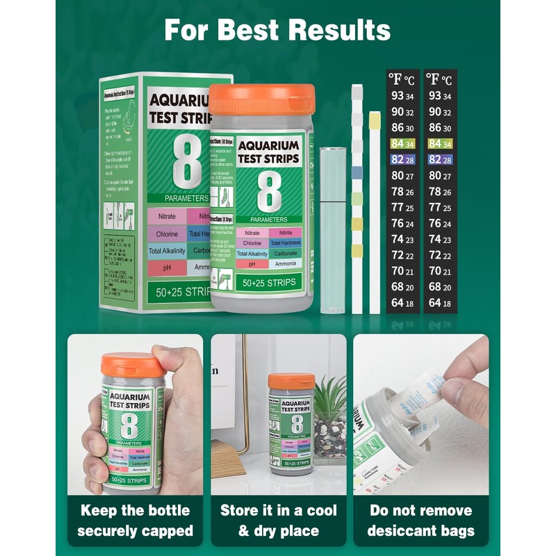 - Regular Test: Totally 75 test strips are stored separately in one bottle. Really handy fish tank water testing kit to help monitor the water quality at regular intervals. Maintain optimal water conditions for the well-being of your aquatic pets