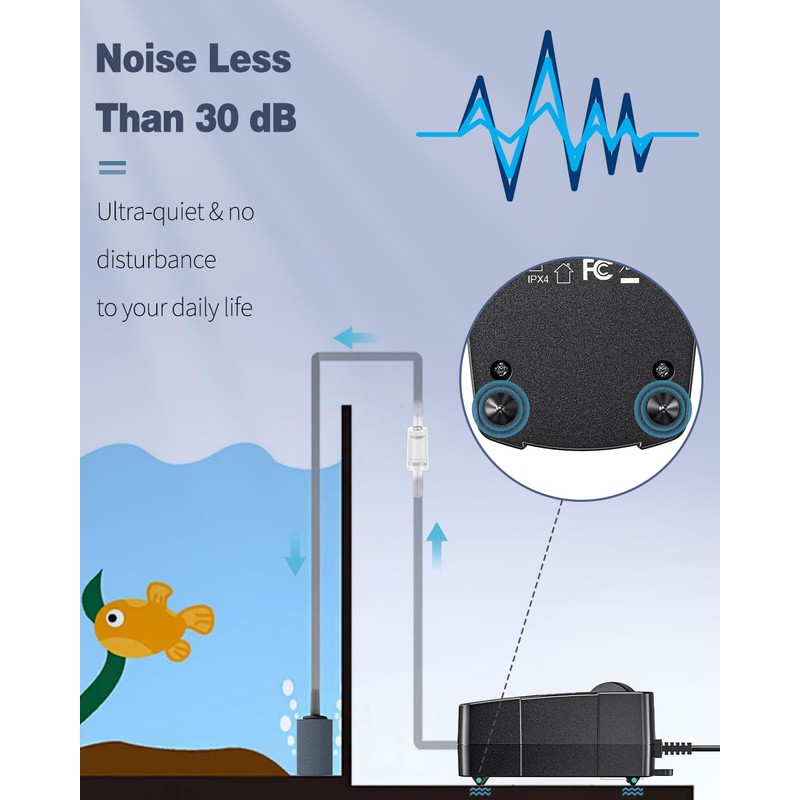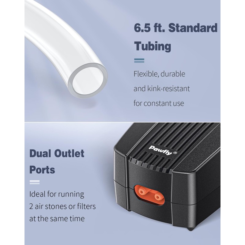 Pawfly Aquarium Air Pump 50 GPH Fish Tank Oxygen Pump for 10-60 Gallon Fish Tanks Buckets Dual Outlet Adjustable Ultra Quiet Aerator Pump with Airline Tubing Air Stones Connectors and Check Valves