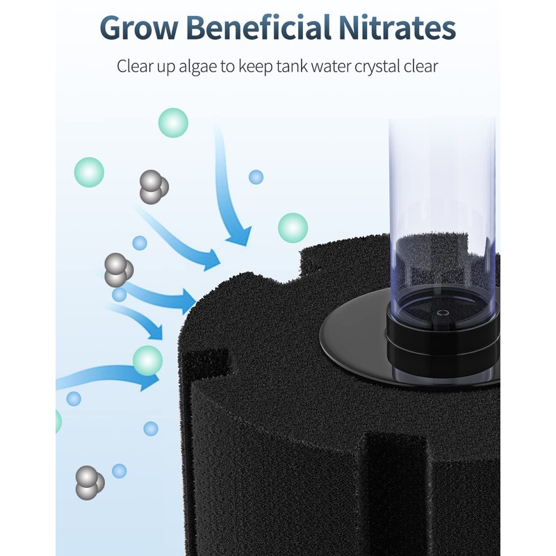 - Fine Sponge Filtration: It provides mechanical and biological filtration and traps debris or waste without sucking up your fish, keeping a crystal clear water tank.