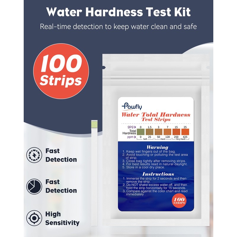 Pawfly Water Hardness Test Kits, 100 Strips Hard Water Test Kit for Drinking ...