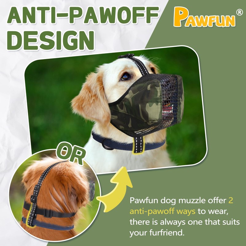 Pawfun Dog Muzzle, Soft Mesh No Barking Pet Muzzles for Small Medium Large Sized Dogs, Breathable Drinkable Dog Mouth Guard Adjustable Puppy Muzzle to Prevent Dogs Biting Chewing and Licking