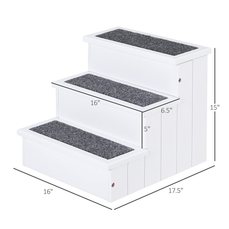 PawHut 3 Step Wooden Carpeted Non Slip Pet Stairs Ramp for Cats and Small Dogs - White