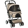 PawHut Travel Pet Stroller for Dogs, Cats, One-Click Fold Jogger Pushchair with Swivel Wheels, Brakes, Basket Storage, Safety Belts, Adjustable Canopy, Zippered Mesh Window Door, Brown