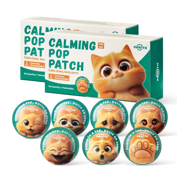 Made with non-toxic ingredients and mimicking maternal pheromones, this calming aid for cats is drug-free and safe around children and pets. Trusted by vets to help indoor cats live calmer, happier lives. Help your cat feel calm and secure — anytime, anywhere. The Pawith Cat Calming POP Patch is a revolutionary, power-free pheromone solution designed for both home and travel use. Using a triple pheromone complex (F3 + F4 + FAP), it mimics natural cat signals of safety, bonding, and maternal comfort to reduce stress-related behaviors. Unlike traditional plug-in diffusers, the POP Patch is electricity-free and stick-anywhere. Simply press to activate, attach to any surface, and let it provide up to 24 hours of steady calming support. Perfect for car rides, vet visits, boarding, moving, or multi-cat households, this innovative dual-POP design ensures consistent and reliable pheromone release. One box contains 7 patches (14 POPs in total), making it easy to manage daily anxiety relief. Whether your cat struggles with scratching, spraying, hiding, or tension around other pets, Pawith offers a gentle, drug-free, veterinarian-recommended solution to keep them happy and stress-free.