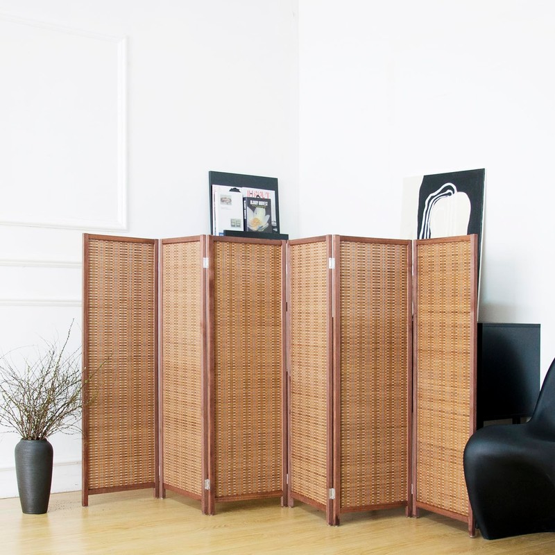 - Dimensions - Total expanded dimension of this 6 panel short room divider in brown is 92"W x 47.2"H (7.7 FT x 3.95 FT), and 15.38"W x 47.2"H for each panel.