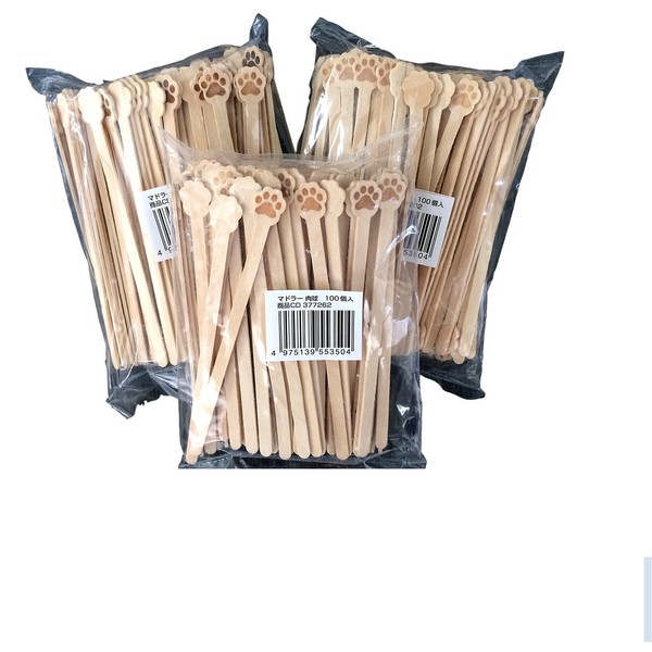Pawprint Muddler 13 cm Wood 100 Pieces x 3 Pack Total 300 Pack of Roses