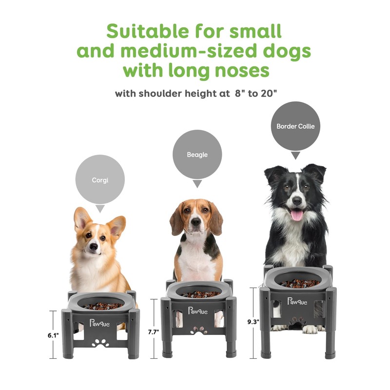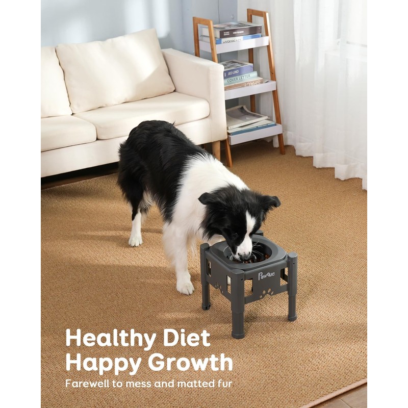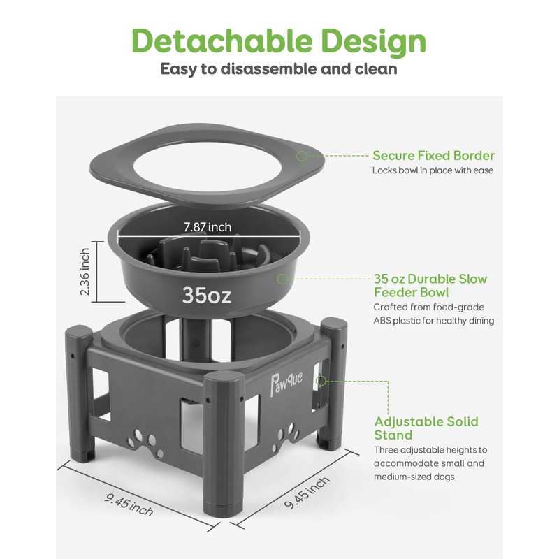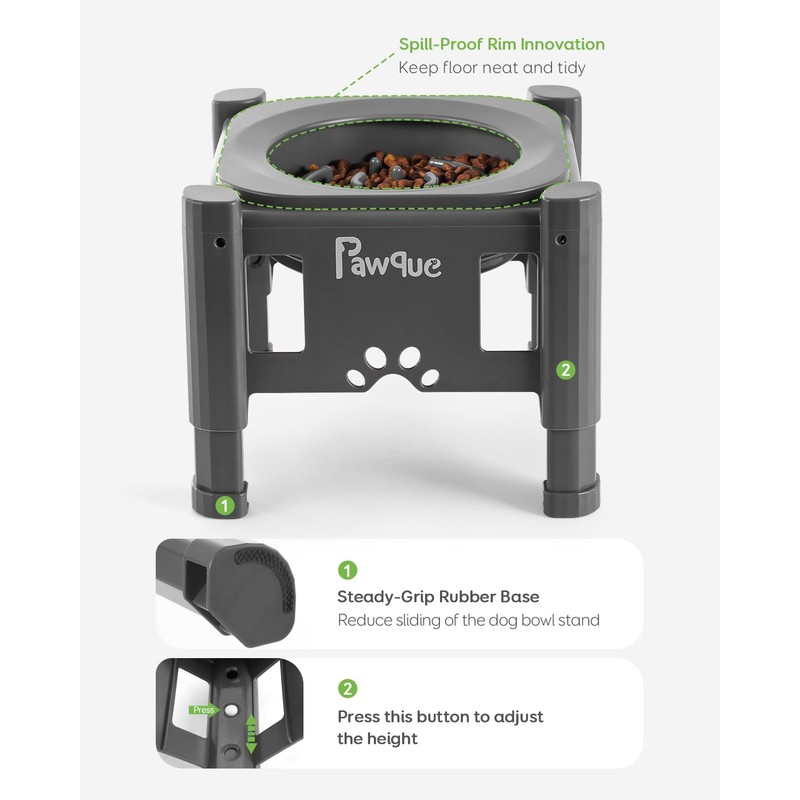 - Slow Feeder Food Bowl: Pawque raised dog bowl comes with a slow feeder bowl which can slows down your dog's feeding to effectively prevent chocking, obesity, and indigestion. Healthier feeding makes happier and fitter pets.