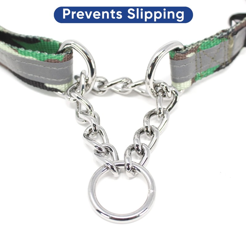 Pawtitas Martingale Dog Collar with Chain a Reflective Dog Training Collar for Medium Dogs | Nylon No Pull Dog Collar for Medium Dog - Green Camo