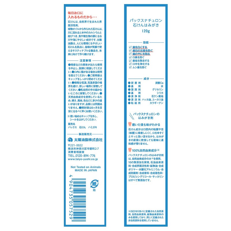 PAX NATURON Soap Toothpaste, 4.2 oz (120 g) x 2 Packs