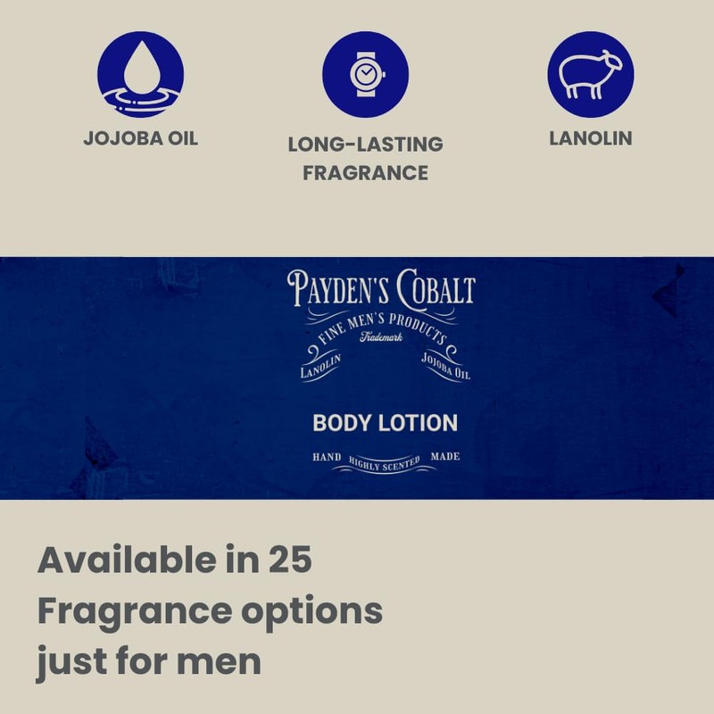 - Payden's Cobalt Body Lotion is extra thick and creamy, with lanolin and jojoba oil to hydrate and condition your skin during and after application.