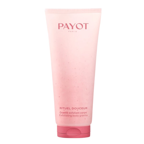 PAYOT Rituel Douceur Granite Exfoliant Corps is an exfoliating cream composed of 85% natural ingredients and enriched with pink quartz micro-crystals and argan shells.