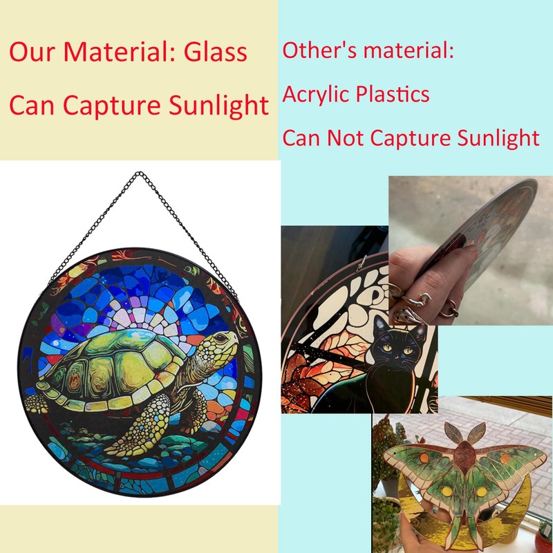 - 【Premium Material】Window hanging is made with high-end stained glass,unique handmade decoration,the turtle pattern is exquisite and beautiful,it is a unique presence in the ornament.