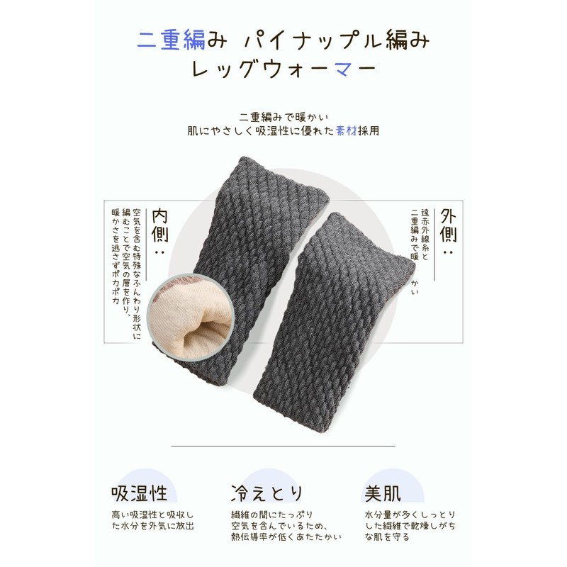 - 【極上のあたたかさ】 遠赤加工×二重編みのレッグウォーマーです。 遠赤外線加工でふくらはぎまでじんわりと温め、二重編みで空気の層を作り暖かさを逃がしません。アームウォーマーにも大活躍!