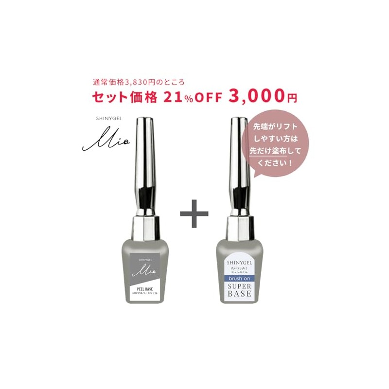 [PB+Brush-on SB Set] SHINYGEL Mio Shiny Gel Mio Peel Base + Brushon Super Base, Made in Japan, Gel Nail Friendly (UV/LED Compatible) Peel Off Base, Peel Off Type, Gel Nail Remover