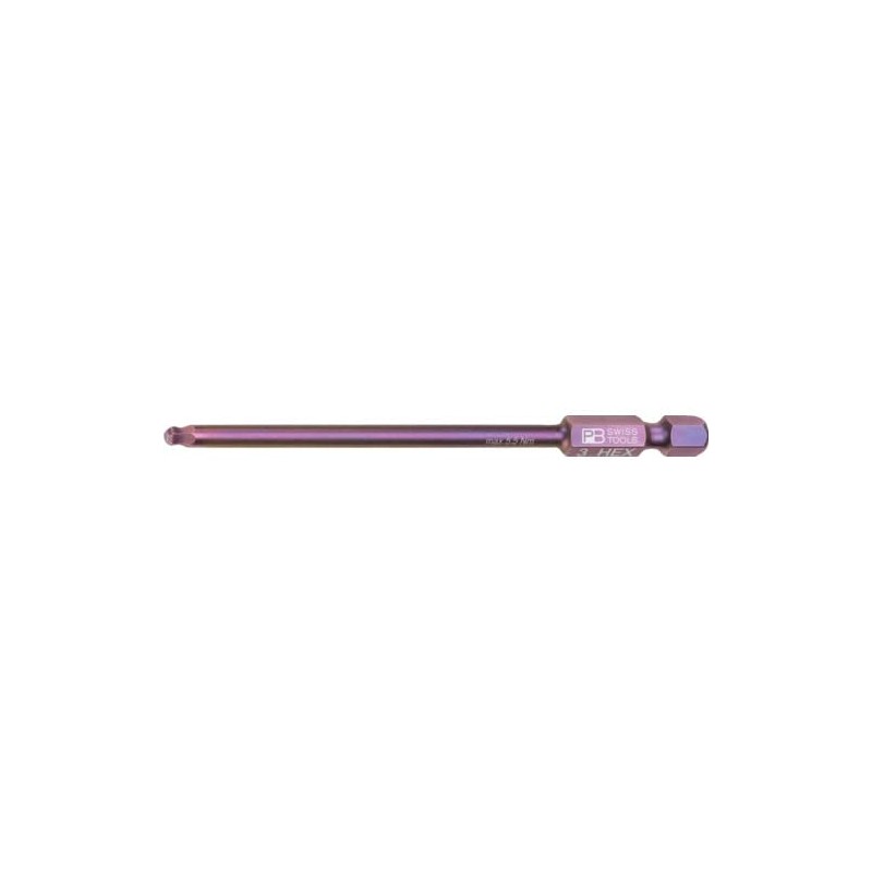 PB SWISS TOOLS 1/4HEX E6 Series Long Bit with Ball Point for 0.1 inch (3 mm) Hex Hole E6L.212/3