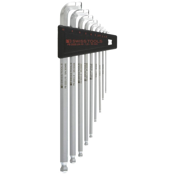 PB SWISS TOOLS 2222LH-10CN Long Hex Wrench Set with Multi-Angle Ball (Pack)