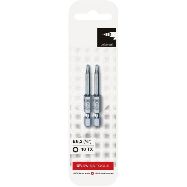 PB SWISS TOOLS E6.400/10CN2 1/4HEX E6 Bit Series T10 Hex Robe Bit with Steps, Total Length: 2.0 inches (50 mm)